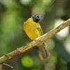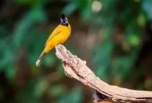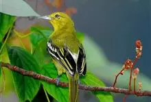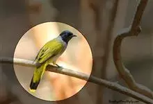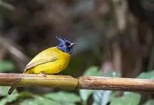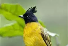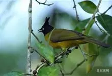 黑冠黄鹎:体长18-21厘米,是一种中等体型偏黄色鹎。整个头、颈、颏、喉黑色,头顶有显著直立的羽冠,黑色,上体褐橄榄黄绿色,下体橄榄黄色。虹膜偏红;嘴及脚黑色。…全部>>