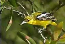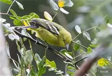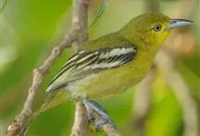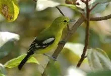 黑翅雀鹎:体重14-19克,体长11.5-16厘米。是树栖性绿色小鸟,外形与叶鹎相似,下体黄色。鸟喙直,翼长而尖,总体羽毛是绿色和黄色相结合,翼上具两道明显近白色横纹,翼近黑而羽缘白。…全部>>