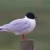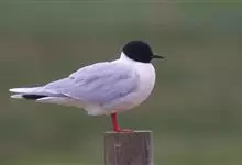 黑嘴鸥 中型水鸟,体长31~39厘米。嘴黑色,脚红色。夏羽头黑色,眼上和眼 下具白色星月形斑,在黑色的头上极为醒目。颈、腰、尾上覆羽、尾和下体白色。初级飞羽末端具黑色斑点。翼下仅部分初级飞羽黑色,与…全部>>