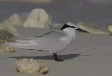北极燕鸥是属于燕鸥属的一种海鸟。体型中等,体长33-39厘米,翼展76-85厘米。其羽毛主要呈灰色与白色,喙和两脚呈红色,前额呈白色,头顶和颈背呈黑色,腮帮子呈白色。其灰色翅膀为305毫米,肩羽带棕…全部>>