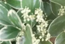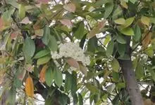 石楠 Kalkman),是蔷薇科石楠属的常绿乔木,高5~12米,株型紧凑,树冠圆球形。树枝为褐灰色;鳞片为褐色,没有毛;叶片革质,长椭圆至侧卵状椭圆形,有锯齿,新叶红色光亮。复伞房花序,白色小花,…全部>>