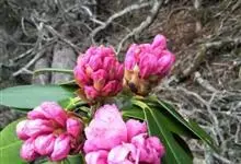 团叶杜鹃:常绿灌木,稀小乔木,高1-4.5米,稀达15米;树皮褐色;幼枝绿色,无毛,老枝黄褐色。顶生冬芽卵形至阔卵形,被稀疏的微柔毛。叶厚革质,常3-5枚在枝顶近于轮生,阔卵形至圆形,上面深绿色,下…全部>>