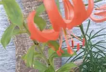 东北百合,别名卷莲花、老哇芋头、轮叶百合、伞蛋花、山丹花,为百合科、百合属多年生球根花卉。鳞茎卵圆形,白色,有节。苞片叶状,花淡橙红色,具紫红色斑点;花被片稍反卷,蒴果倒卵形,花期7-8月,果期9月,…全部>>