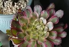 红缘莲花掌属蔷薇目、景天科植物,原产大西洋的加那利群岛。质厚,蓝绿色,被白霜,叶缘红褐色。聚伞花序,花浅黄色,有时带红晕。叶形叶色较美,有一定的观赏价值,多盆栽用于点缀室内;可放置于电视、电脑旁,…全部>>