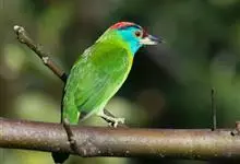 蓝喉拟啄木鸟,是须鴷科、拟啄木鸟属的鸟类。蓝喉拟啄木鸟为小型鸟类,体长20-23厘米。前额至头顶鲜红色,其上有一宽阔的黑色横带,将此红色分为前后二块;头侧、颏、喉蓝色,下喉两侧各具一红色点斑。…全部>>