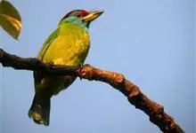 金喉拟啄木鸟,是须鴷科、拟啄木鸟属的鸟类。金喉拟啄木鸟为小型鸟类,体长19-24厘米。额深红色,头顶金黄色,后枕具一大块深红色斑,耳羽和头侧银灰色,上体草绿色,颏和上喉金黄色,下喉淡银灰色,…全部>>