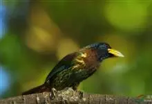 绿拟啄木鸟为鴷形目,须科,拟啄木属的一种。形较大拟啄木鸟略小,体长约260mm。头、颈及胸浅褐而具淡黄白色条纹;喉几为淡黄白色;身体余部草绿色。虹膜棕褐色,眼周裸露部黄色;嘴峰角黄色;跗跖和趾角黄…全部>>