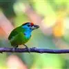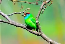 蓝喉拟啄木鸟,是须鴷科、拟啄木鸟属的鸟类。蓝喉拟啄木鸟为小型鸟类,体长20-23厘米。前额至头顶鲜红色,其上有一宽阔的黑色横带,将此红色分为前后二块;头侧、颏、喉蓝色,下喉两侧各具一红色点斑。…全部>>
