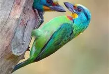 绿拟啄木鸟为鴷形目,须科,拟啄木属的一种。形较大拟啄木鸟略小,体长约260mm。头、颈及胸浅褐而具淡黄白色条纹;喉几为淡黄白色;身体余部草绿色。虹膜棕褐色,眼周裸露部黄色;嘴峰角黄色;跗跖和趾角黄…全部>>