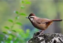 白颊噪鹛是雀形目噪鹛科噪鹛属鸟类,又称土画眉、小画眉、小噪鹃。成鸟额至头顶栗褐色,长眉纹、眼先和颊纹棕白色,眼后至耳羽深褐色,…全部>>