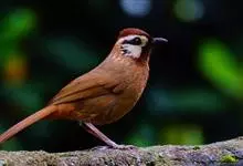 白颊噪鹛是雀形目噪鹛科噪鹛属鸟类,又称土画眉、小画眉、小噪鹃。成鸟额至头顶栗褐色,长眉纹、眼先和颊纹棕白色,眼后至耳羽深褐色,…全部>>