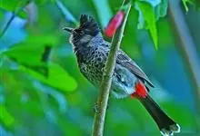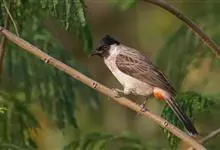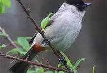 黑喉红臀鹎是雀形目鹎科鹎属鸟类,别称有黑头公、红臀鹎。头顶黑色具光泽;后颈、肩和背暗褐具灰色狭缘;腰羽几纯暗褐,尾上覆羽近白色,羽端浅灰褐色;尾羽褐黑,中央尾羽具狭窄的白色端斑,…全部>>
