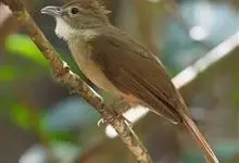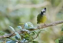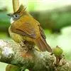 白喉冠鹎:体长20-25厘米。头顶红褐色,有长而细的羽冠、红褐色,头侧灰色。上体橄榄绿黄色,飞羽暗褐色,外翈茶黄色,尾下覆羽皮黄色。…全部>>