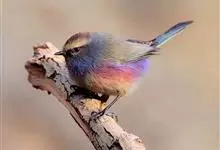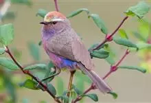 花彩雀莺:体长9-12厘米,是一种毛茸茸偏紫色的雀莺。顶冠棕色,眉纹白。尾长,羽毛松软。前额有一宽阔的眉纹淡黄色,头顶栗色或棕红色,有的具紫蓝色光泽。背灰色,腰和尾上覆羽辉紫蓝色,飞羽灰褐色。…全部>>