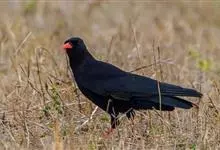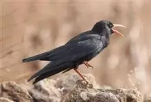 红嘴山鸦,是脊索动物门鸟纲雀形目鸦科鸟类。红嘴山鸦的成鸟通体羽毛纯黑色具有蓝色金属光泽,翼和尾泛有蓝绿色金属光泽;虹膜暗褐色,喙较为尖细,并且呈镰状下弯,喙和脚朱红色。…全部>>