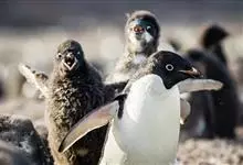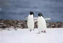 阿德利企鹅在企鹅家族中属中、小型种类,体长72-76厘米,和许多种类企鹅一样,雌鸟和雄鸟同形同色,从外形难以辨认。眼圈为白色,头部呈蓝绿色,嘴为黑色,嘴角有细长羽毛。羽毛由黑、白两色组成,…全部>>