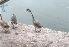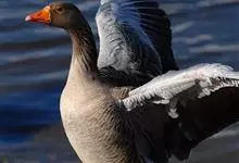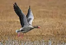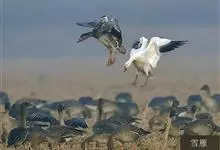 灰雁:体长70-90厘米,翼展147-182厘米,体重2.5-4千克,寿命17年。体大而肥胖。嘴、脚肉色,上体灰褐色,下体污白色,飞行时双翼拍打用力,振翅频率高。脖子较长。腿位于身体的中心支点,…全部>>