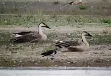 豆雁,雁形目鸭科。成鸟头、颈、背灰褐色,带淡黄色羽缘;尾上覆羽白色,尾羽黑褐色带白端,故飞行伸展时可见尾基和尾端各有一条白色弧线;翼上覆羽灰褐色,初级覆羽深黑灰色带黄白色羽缘,…全部>>