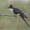 斑翅凤头鹃: 成鸟具羽冠,上体及头侧、翅、尾等黑色,具铁绿色亮辉,尾羽端部具白斑,两侧者形宽,中央者较狭;下体白色、淡灰白或略带棕黄色。虹膜褐至红褐色;嘴黑色;脚灰蓝黑色。…全部>>