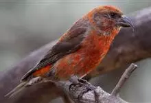 红交嘴雀:体重28-48克,体长145-175毫米。是燕雀科交嘴雀属的鸣禽。是一种小型的燕雀。雄鸟通体砖红色,上体较暗,腰鲜红色;翼和尾近黑色,头侧暗褐色;雌鸟暗橄榄绿或染灰色,…全部>>