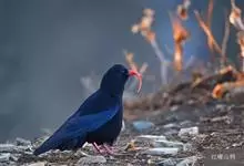红嘴山鸦,是脊索动物门鸟纲雀形目鸦科鸟类。红嘴山鸦的成鸟通体羽毛纯黑色具有蓝色金属光泽,翼和尾泛有蓝绿色金属光泽;虹膜暗褐色,喙较为尖细,并且呈镰状下弯,喙和脚朱红色。…全部>>