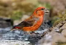 红交嘴雀:体重28-48克,体长145-175毫米。是燕雀科交嘴雀属的鸣禽。是一种小型的燕雀。雄鸟通体砖红色,上体较暗,腰鲜红色;翼和尾近黑色,头侧暗褐色;雌鸟暗橄榄绿或染灰色,…全部>>