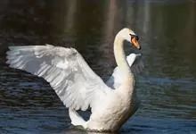 疣鼻天鹅:是鸟纲、鸭科、天鹅属的一种大型的游禽,体长1.2-1.5米,体重6.75-10千克。脖颈细长,前额有一块瘤疣的突起,因此得名。全身羽毛洁白。在水中游泳时,颈部弯曲而略似“S“形。…全部>>