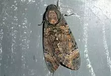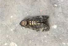 鬼脸天蛾,是鳞翅目天蛾科面形天蛾属动物。成虫翅展100~125毫米,体黑褐色;胸背有骷髅形斑纹;卵圆球形,直径约2毫米,淡黄绿色,表面光滑;老熟幼虫体长70~90毫米,蛹体长约56毫米;前翅为褐色,…全部>>