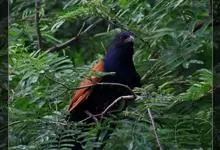褐翅鸦鹃,是鹃形目鸦鹃科鸦鹃属的鸟类。褐翅鸦鹃的身体为黑色;头颈和胸带蓝紫色金属光泽并具黑亮的羽干纹,下胸至腹部泛金属绿光泽;两翼和肩部为棕栗色,外侧飞羽具暗色羽端,尾羽闪铜绿色光泽;虹膜赤红色,…全部>>