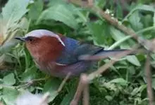 凤头雀莺:小型鸟类。体长9-10厘米,雄鸟呈毛茸茸的紫色和绛紫色,顶冠淡紫灰色,额及凤头白色,尾全蓝。雌鸟喉及上胸白,至臀部渐变成淡紫色,耳羽灰,…全部>>