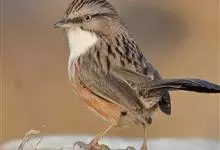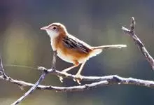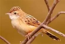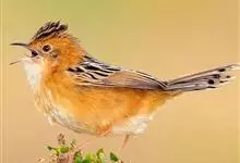 金头扇尾莺体小而具褐色纵纹的莺。嘴细长,略向下弯;翼短,体型娇小,尾长。下体皮黄,喉近白,尾深褐,尾端皮黄。雌雄羽色相近,羽色单调。繁殖期雄鸟顶冠亮金色,腰褐色。雌鸟及非繁殖期雄鸟头顶密布黑色细纹,…全部>>