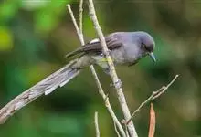 长尾奇鹛是噪眉科、奇鹛属中型鸟类,体长28-33厘米。上体包括两翅和尾鼠灰色,头顶和两翅较深,尾较淡,尾呈凸状、特长、具灰白色端斑,翅具显著的白色翅斑,在黑色的翅上极为醒目。喉胸褐灰色,…全部>>