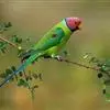 紫红头鹦鹉是鹦形目鹦鹉科的鸟类。鸟体为绿色,头部中间为红色,下颏下方延伸到脸颊下方,环绕整个颈部有一条黑色的环状羽毛,并连接一条蓝绿色的条状羽毛。…全部>>