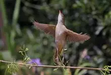 厚嘴苇莺:苇莺科、苇莺属鸟类。额羽松散,羽干伸延;嘴宽阔,基部宽度超过4毫米;嘴须非常发达,具副须;尾羽12枚,尾羽凸状甚著;上体羽橄榄棕褐色;下体羽近白色,微沾淡棕色。虹膜暗褐色;嘴黑褐色,…全部>>