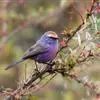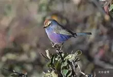 凤头雀莺:小型鸟类。体长9-10厘米,雄鸟呈毛茸茸的紫色和绛紫色,顶冠淡紫灰色,额及凤头白色,尾全蓝。雌鸟喉及上胸白,至臀部渐变成淡紫色,耳羽灰,…全部>>