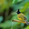 黑冠黄鹎:体长18-21厘米,是一种中等体型偏黄色鹎。整个头、颈、颏、喉黑色,头顶有显著直立的羽冠,黑色,上体褐橄榄黄绿色,下体橄榄黄色。虹膜偏红;嘴及脚黑色。…全部>>
