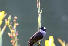 白头鹎是雀形目鹎科鹎属鸟类,别名有白头翁、白头婆、淡臀鹎、中国鹎等。喙黑色,嘴峰稍曲,端部下曲,具近端缺刻;鼻孔裸露,具瓣膜和嘴须;额至头顶黑色,虹膜褐色,眼至后枕白色,耳羽后端具一小白斑,…全部>>