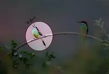 蓝颊蜂虎:是蜂虎科、蜂虎属的鸟类,共有2个亚种。体长27-33厘米,翼展46-49厘米,体重38-50克。嘴形细长而下弯,先端尖,…全部>>