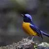 棕腹大仙鹟:体重24-28克,体长15-17厘米,是一种小型的色彩亮丽的鹟。雄鸟上体深蓝,下体棕色,脸黑,额、颈侧小块斑、翼角及腰部亮丽闪辉蓝色。与棕腹仙鹟易混淆,区别在色彩较暗。雌鸟灰褐,…全部>>