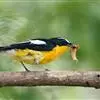 白眉姬鹟是小型鸟类,体长11-14厘米。雄鸟上体大部黑色,眉纹白色,在黑色的头上极为醒目。腰鲜黄色,两翅和尾黑色,翅上具白斑。下体鲜黄色。雌鸟上体大部橄榄绿色。腰鲜黄色,翅上亦具白斑。下体淡黄绿色。…全部>>