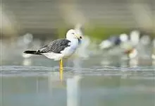 灰背鸥大型水鸟,体长62~69厘米。嘴直,黄色,下嘴先端有红色斑。脚粉红色,头、颈和下体白色,背、肩和翅黑灰色,腰,尾上覆羽和尾白色。冬季头和上胸有褐色纵纹,特别是眼周和后枕较密。飞翔时翅前后缘白色…全部>>
