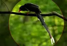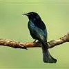 发冠卷尾是中型鸟类,体长28-35厘米。通体绒黑色缀蓝绿色金属光泽,额部具发丝状羽冠,外侧尾羽末端向上卷曲。栖息于海拔1500米以下的低山丘陵和山脚沟谷地带,多在常绿阔叶林、次生林或人工松林中活动。…全部>>