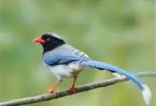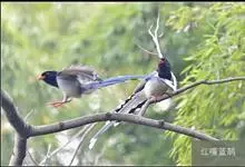 红嘴蓝鹊,别名山鹊、长尾鹊,是鸦科蓝鹊属的一种观赏性较强的大型鸣禽。该物种为体长54~65cm,头、颈、喉和胸黑色,头顶至后颈有一块白色至淡蓝白色或紫灰色块斑,其余上体紫蓝灰色或淡蓝灰褐色。尾长呈凸状,…全部>>