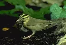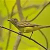 横斑林莺:体长15-18厘米,是一种绿色及黄色雀鹎。翼上具两道明显近白色横纹,上体橄榄绿色,翼近黑而羽缘白,眼圈黄色,下体黄。雄鸟上体概呈灰褐色,在一定距离看起来有点泛蓝。下体白色,布满暗色波浪形横斑。…全部>>