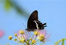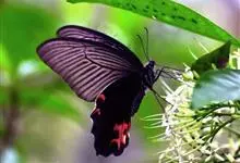 蓝凤蝶,Papilio protenor Cramer,凤蝶科凤蝶属的一种昆虫。翅展95~120mm。翅黑色,有靛蓝色天鹅绒光泽。雄蝶后翅正面前缘有黄白色斑纹,…全部>>