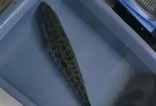乌鳢[wū lǐ],又名黑鱼、财鱼、乌鱼、蛇头鱼,属于鲈形目鳢科鳢属鱼类。成年乌鳢体长大约为40~60厘米,最大长度可达1米;一般体重约为0.5~1千克,最大8~9千克。乌鳢体肥而延长,前部圆筒状,…全部>>