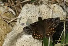 翅暗褐色,雄蝶有紫色光泽。前翅外半部有深灰色波状横带,其前缘有模糊白色点列;后翅面有2行黄色斑列,中室端斑1个。雌蝶前翅面波状带色淡,宽而明显。 全部>>