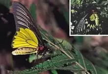 荧光裳凤蝶是凤蝶科裳凤蝶属的一种大型蝴蝶,该物种共有3个亚种。该蝶飞翔的时候姿态优美,前翅黑色,后翅金黄色和黑色交融的斑纹在阳光照射下金光灿灿,显得华贵美丽。幼虫寄主为多种马兜铃属的植物,取食马兜铃…全部>>