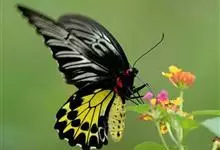 金裳凤蝶是凤蝶科、裳凤蝶属的动物。金裳凤蝶身体呈黑色,头、颈和胸侧有红毛,腹部有黑黄两色相间条纹,雄蝶前翅黑色,具黑天鹅绒光泽,各脉两侧灰白色,后翅金黄色,各室外缘有等腰三角形黑斑1枚,斑内侧有晕,…全部>>
