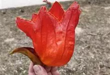 火焰树是紫葳科、火焰树属乔木,树皮平滑,灰褐色。奇数羽状复叶,对生,连叶柄长达45厘米;小叶13-17枚,叶片椭圆形至倒卵形,伞房状总状花序,顶生,密集;被褐色微柔毛,具有明显的皮孔;花冠一侧膨大,…全部>>